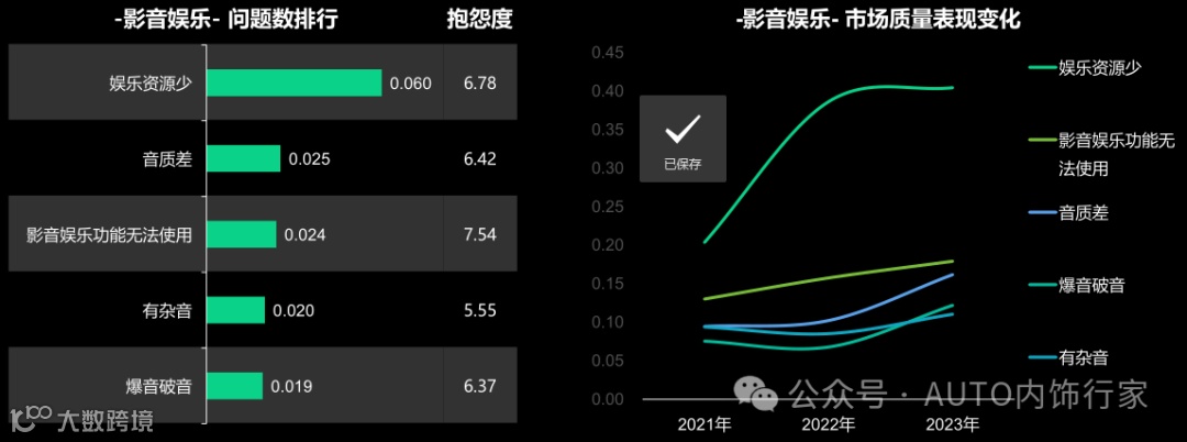 各车企在座舱娱乐资源数量上差异较大,用户很容易进行对比,从而引起抱怨。