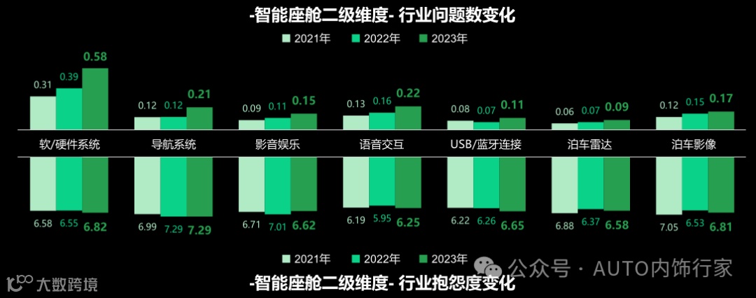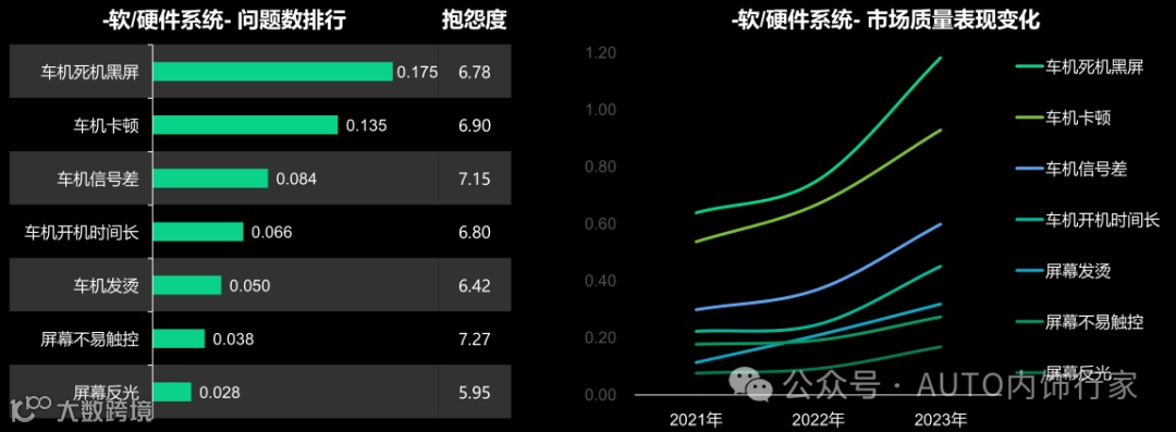 2023年智能座舱Top10问题中,有5项问题为软/硬件系统维度。