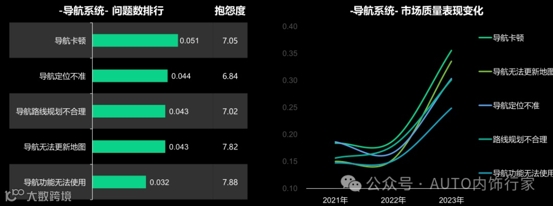 与去年相比,2023年导航系统各问题的市场质量表现下滑较多。