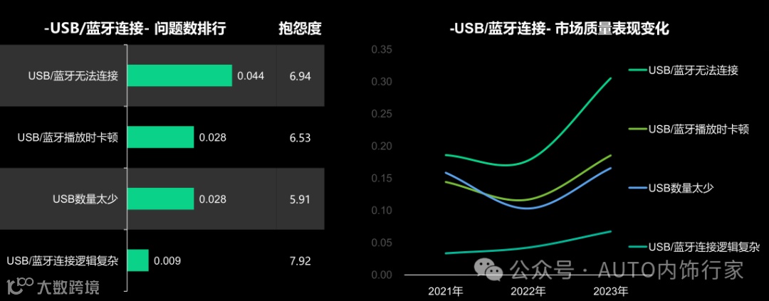 2023年,USB/蓝牙无法连接问题相对频发,与2022年相比,市场质量表现下滑明显。