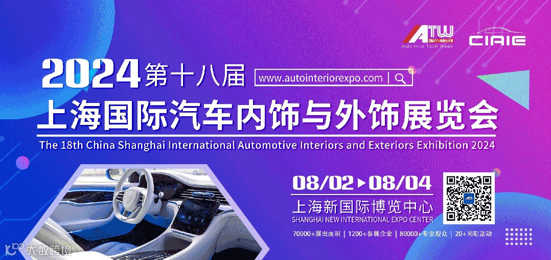 第十八届上海国际汽车内饰与外饰展览会(CIAIE 2024)将于2024年08月02日-04日在上海新国际博览中心隆重召开。同期整体展览面积将达70,000平米,预计观众规模将达80,000人以上,1,200+国内外参展商及品牌将亮相展会现场。