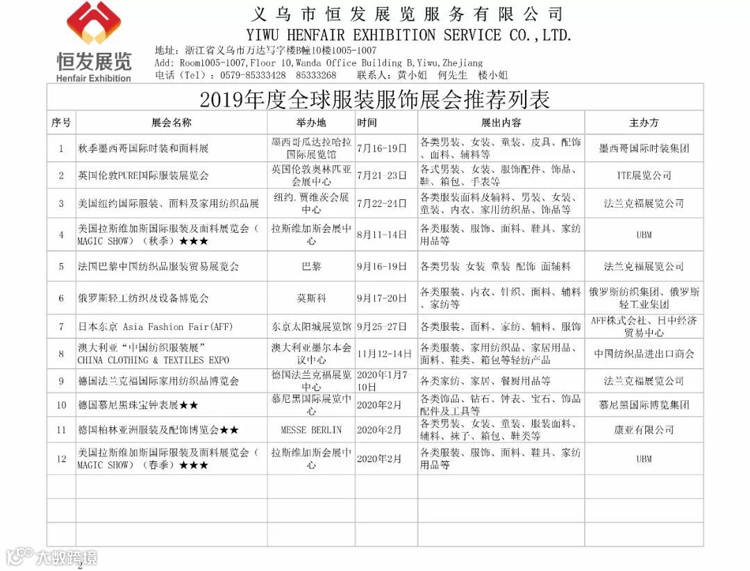 2019年已经步入到了第二季度,看着别的行业都在忙着全球参展,各位服装服饰行业的大佬是不是已经迫不及待也要参展了呢?别急,2019年度全球最强服装服饰参展攻略马上奉上,为你推荐2019-2020年度全球范围内最具价值的各大展会!。