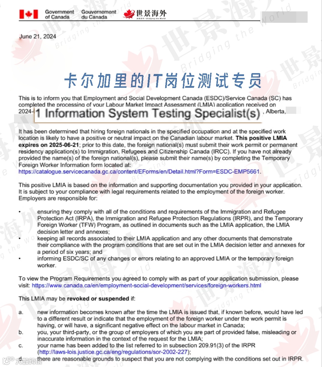 现在,我们世景海外刚好有一个阿省的IT测试专员岗位!只要申请就能快速移民加拿大!