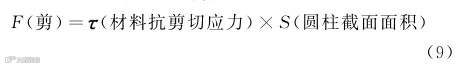 计算所得:F=271N弹簧销的材质为304不锈钢,抗拉应力为515MPa,抗剪切应力一般取抗拉应力的0.6~0.8,选取安全系数为10。圆柱销抗剪切力计算公式为: