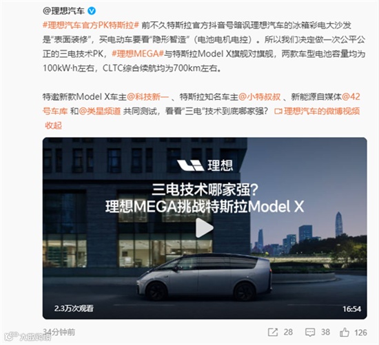 被特斯拉暗讽三电不行 理想汽车果断反击