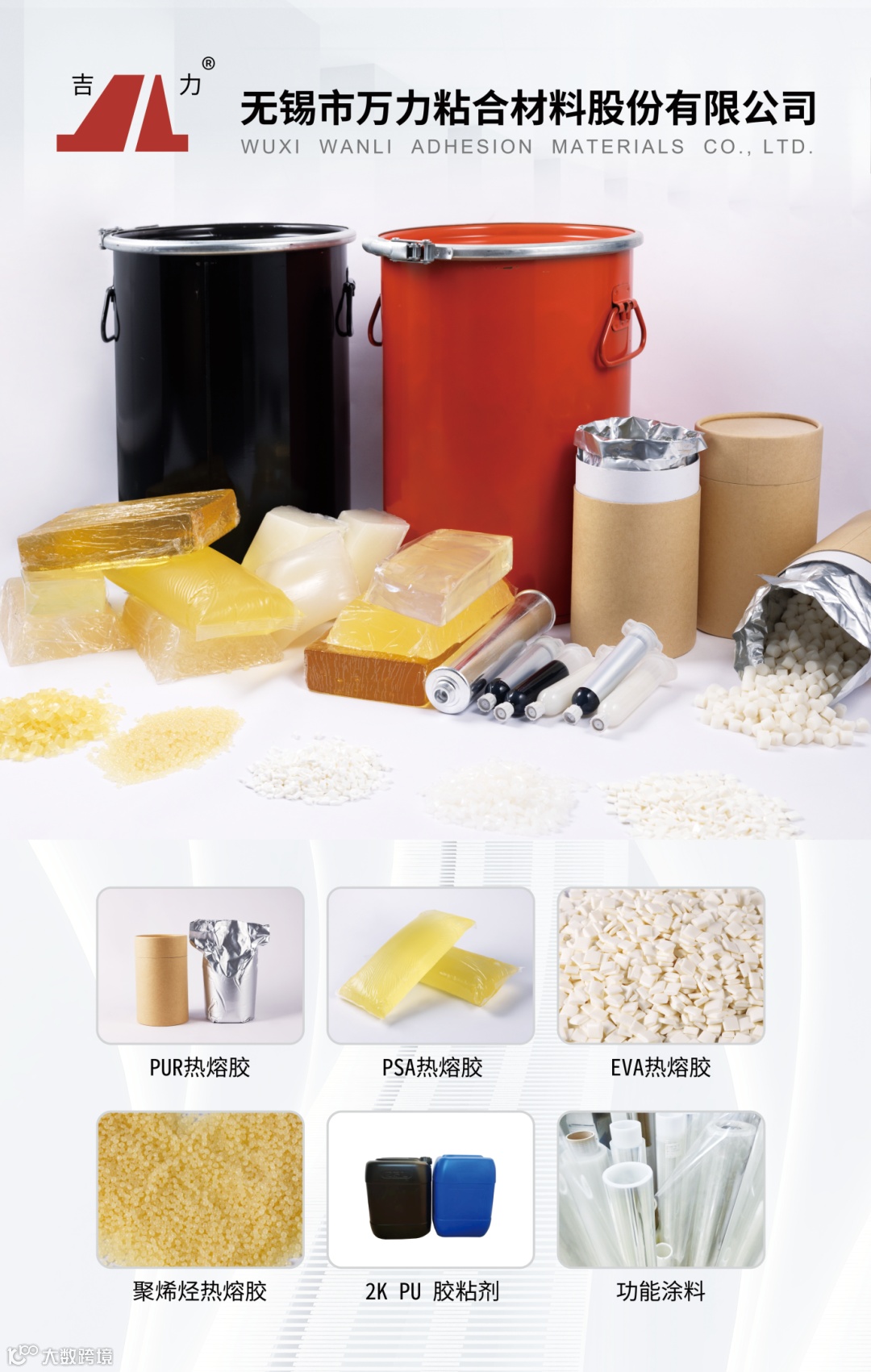 集PUR热熔胶、双组份PU胶、EVA热熔胶、热熔压敏胶、聚烯烃热熔胶、功能涂料等多元产品。产品广泛用于家居建材、纺织面料、汽车制造、家电电子、书刊装订、包装(纸箱封箱,彩盒封盒),纸塑复合、胶纸胶带、商标标贴、鞋材、空气滤芯器、医疗用品、卫材等行业。