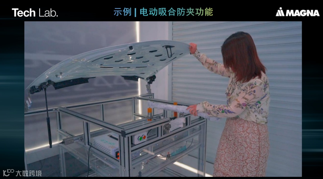 另一方面,纯电动汽车由于没有发动机,车辆前部预留有大量空间,因此前行李厢的应用更普遍。麦格纳敏锐捕捉到这一趋势,通过将前行李厢电动吸合锁与ECU控制单元、电驱动、铰链、手势或其他触发开关相结合,麦格纳开发出完整的电动前盖系统,实现前盖的自动开闭,为用户提供便利。