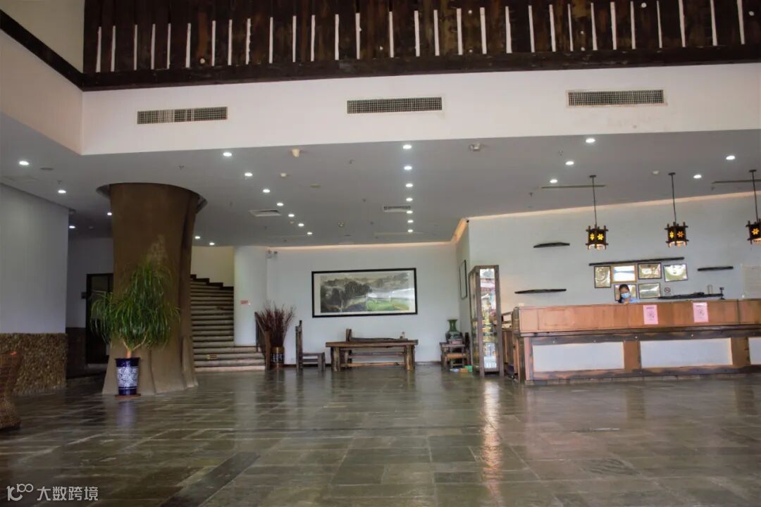 进入酒店前台接待大厅,整个大堂的布局是采用木制,给人一种古色古香的美感。