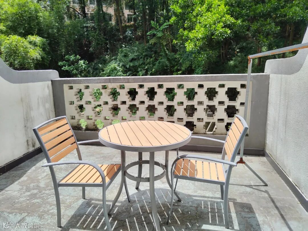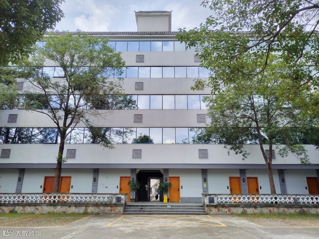 副楼B栋住宿环境,临山而居,房外有一条河道,树木丛生,幽静而舒适。
