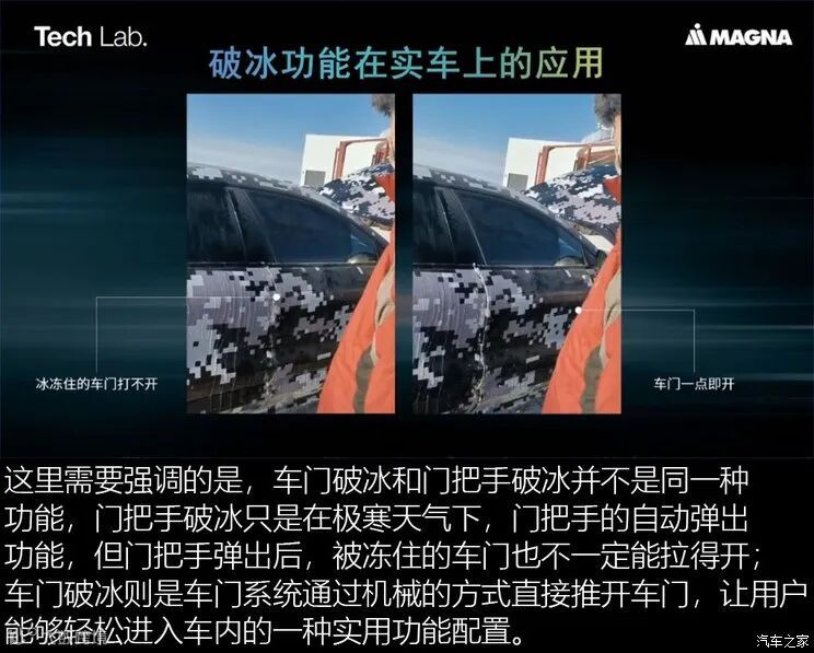 SMARTACCESS智能电动车门系统的破冰功能拥有最小500N的破冰能力,并且逻辑上可以实现多次破冰,确保车门在极寒天气下能够顺利打开,绝对是高纬度车友冬日里的必备配置。