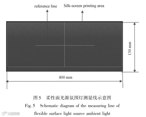 考虑到该柔性面光源氛围灯表层发光图案较为复杂,在进行亮度及均匀性的测量时取点较为困难,为保证亮度和均匀性测量的效率,故以硅胶导光板出光面为测量面,同时在导光板水平中线以及垂直中线上各截取长度为160mm、80mm的线段作为测量线,如图5所示