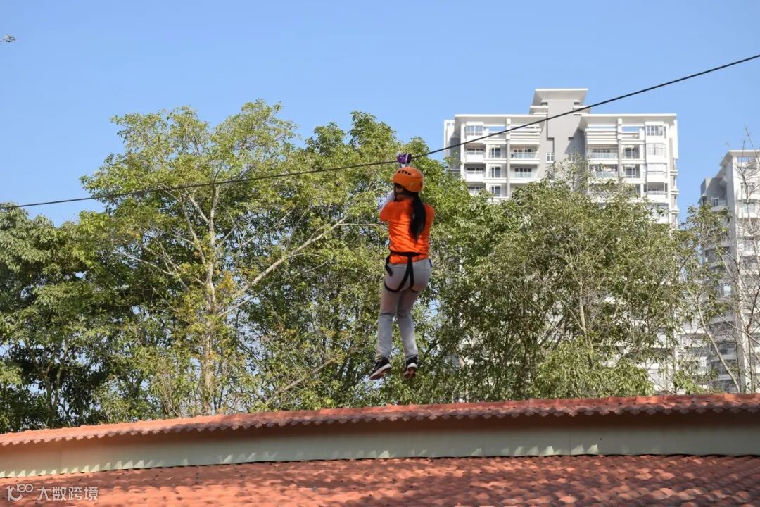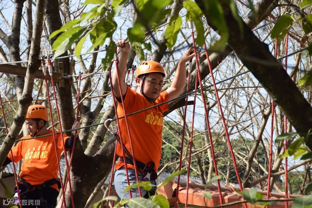 由于树上穿越的高度对于恐高的人来说退避三尺,但是大家慢慢的克服了心理恐惧,走完了树上穿越上的项目。