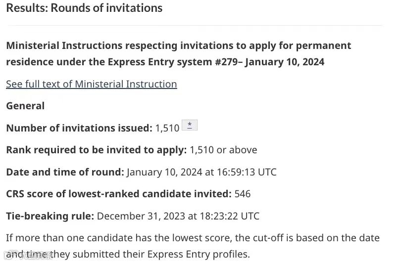 加拿大时间2024年1月10日,联邦快速通道Express Entry发出第279次邀请,本次为全类别邀请。