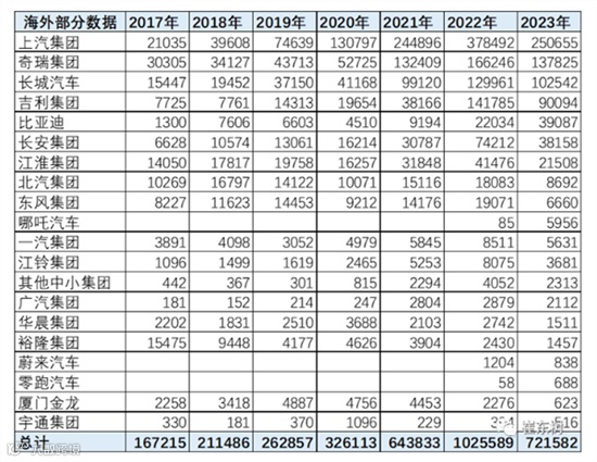 中国汽车出口市场近两年表现超强增长。出口增长重要原因是新能源车出口暴增,而且出口数量和均价均强势增长。海关数据显示,中国汽车2023年上半年出口234万台。乘联会秘书长崔东树表示,全年正常情况下突破500万应该是有希望的。主力车企的海外表现相对比较突出。目前来看,主力车企的上汽、奇瑞、长城、吉利、比亚迪等表现是极强的走势。尤其是上汽集团的出口在近期表现极其强势良好的态势。2023年1-6月上汽集团出口在海外能够看到的数据是25万台的规模,继续保持国内第一。而比亚迪可谓最大黑马,2017年海外销量仅1300台,今年上半年销量已经突破3.9万辆,增长30倍!