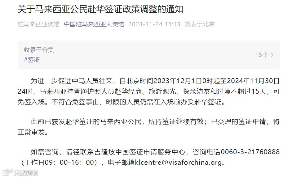这些政策都表明中国和马来西亚都采取了积极的措施,以促进两国之间的人员往来、旅游业发展,并加强双边合作。这有望增加文化、商业和旅游交流,为两国关系的深化提供支持。