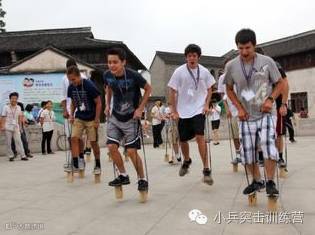 小队的所有人站在大板鞋上,从起点带到终点,中间采用小组竞赛形式,每个小组的队员在行进过程中必须在一定的操作规则范围内,如果违反规则,就要受到相应的惩罚。