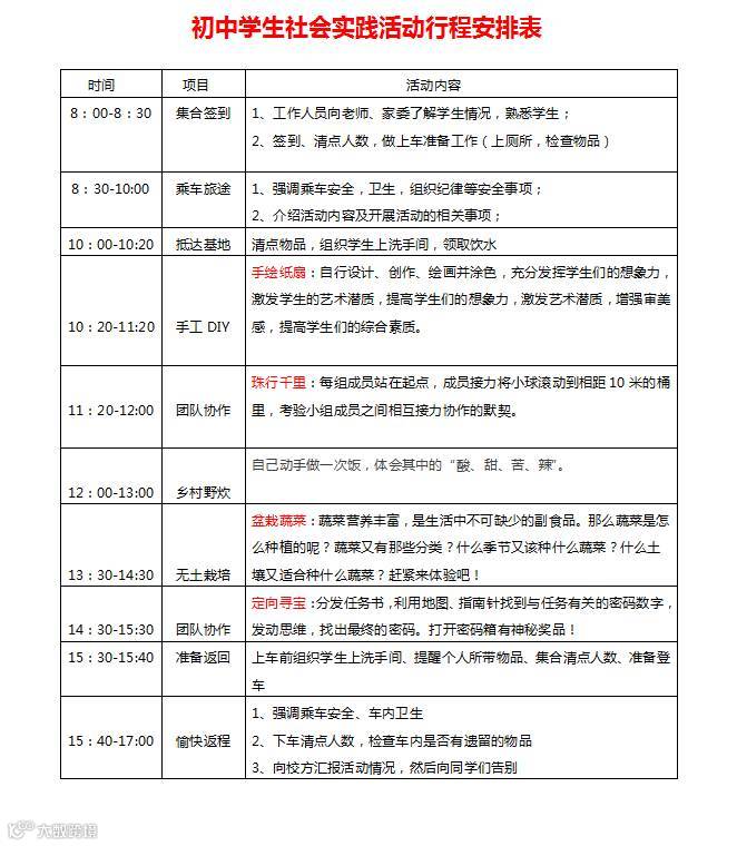 为学生提供安全可靠的实践环境;购买保险(30万意外伤害,6万意外医疗);退役军人领队管理,丰富的组织纪律经验,保证实践活动的有序进行,杜绝组织安全隐患。