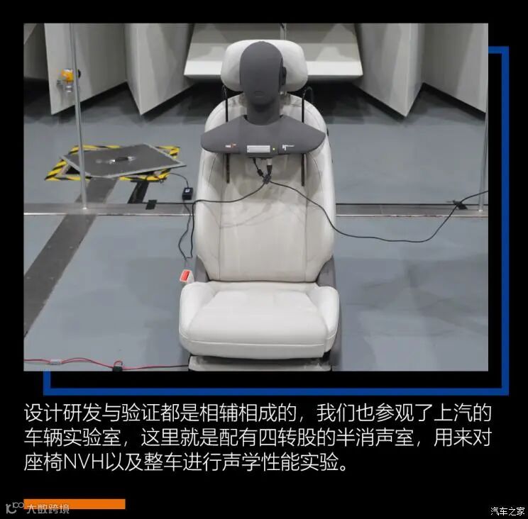 在半消声室内通过专业设备可以对车辆各种噪音源进行定位以及强度的测量,如今电动车少了发动机噪音,车内其余零部件在行驶时产生的各种声音更容易被消费者感知,比如电动座椅的电动机,通过实验以及反复调整,飞凡F7的座椅调节电机声压级已经能做到低于行业平均,甚至优于不少中高端对手。而通过台架模拟国内道路也能对座椅的舒适性以及异响进行评价。
