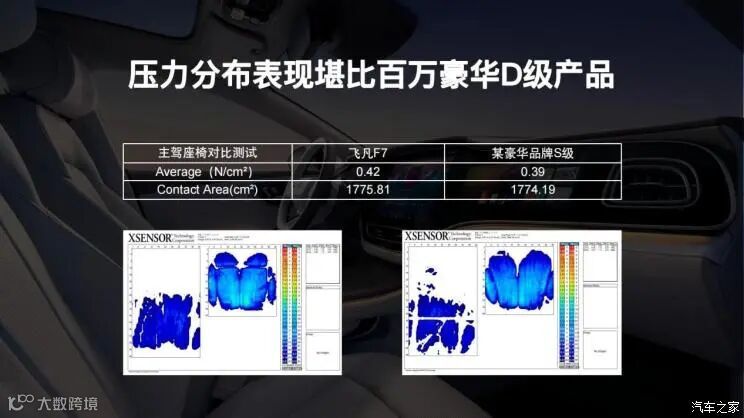 前面也提到,中汽研“舒适之星”被视作业内最权威的座椅舒适性评价与认证。飞凡F7成为第一款在压力分布共30个子项目中获得满分的车型。