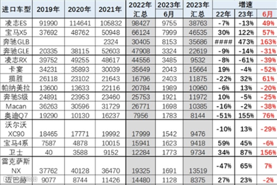 近日,2023上半年进口车销量排行曝光,从此次公布的信息来看,2023年1-6月的乘用车进口量仅有34万台,同比下降25%,刷新过去十年的进口量最低点。展开来看,今年上半年排名进口车品牌销量前三的依然是奔驰、宝马和雷克萨斯。其中奔驰在今年上半年的进口量达到了93918辆,同比增长了36%;宝马紧随其后,达到了91021辆,同比增长了58%,成绩依然优秀。