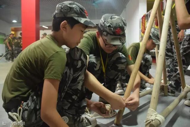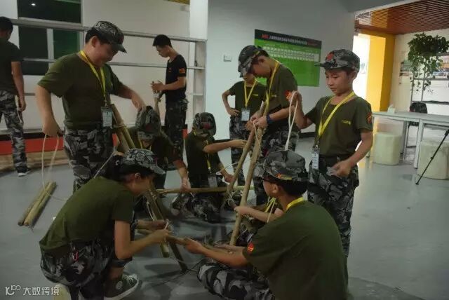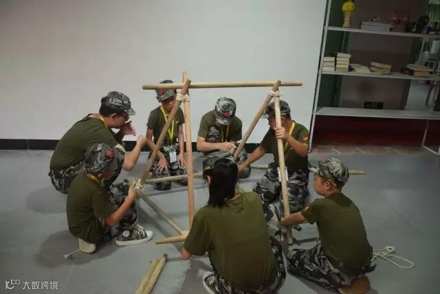 刚完成一项创意的绳结制作,接着各连队对本队的队名、队呼进行文化渲染,比比哪队士气更足!