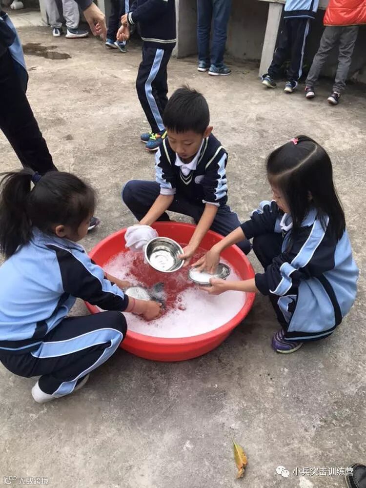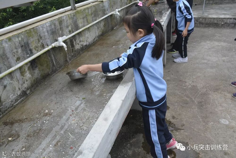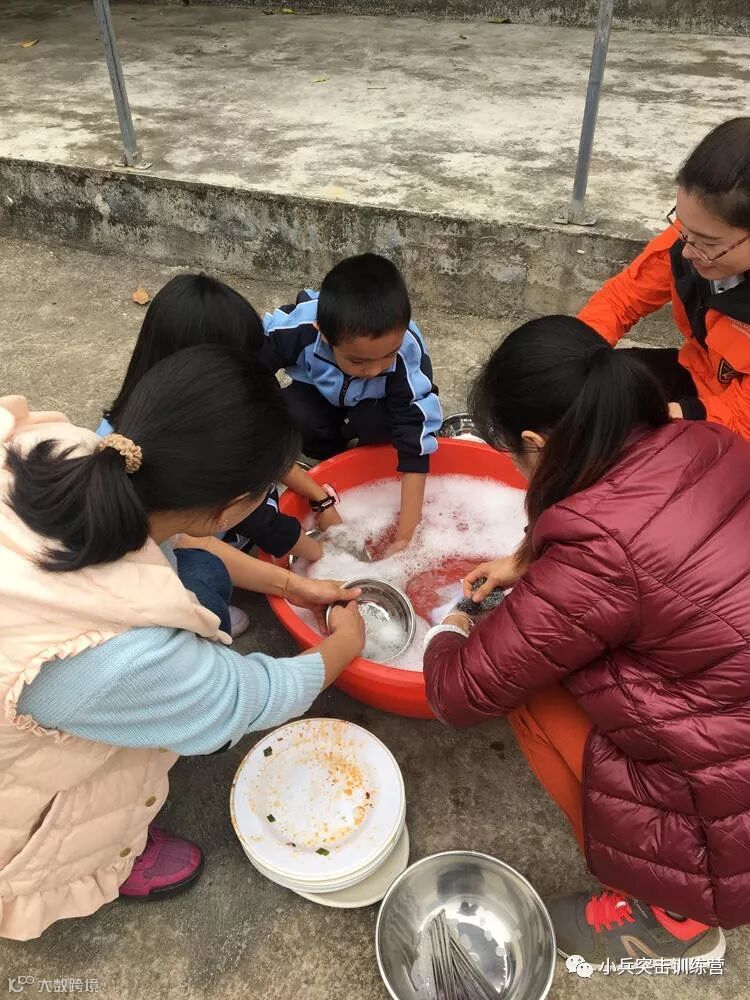 洗着吃完饭的碗筷,体验劳动的快乐,