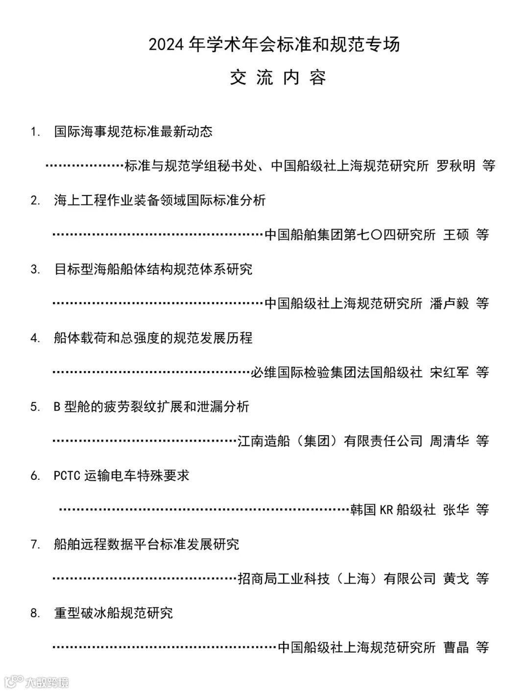兹定于2024年10月23日(星期三)13:30-17:00,上海市船舶与海洋工程学会在上海科学会901会议室召开上海市船舶与海洋工程学会2024年学术年会标准和规范专业委员会专场。