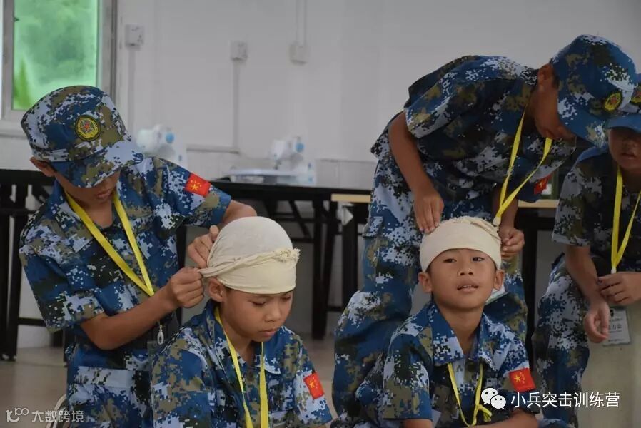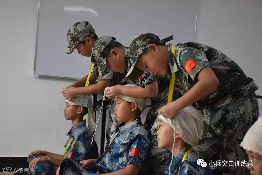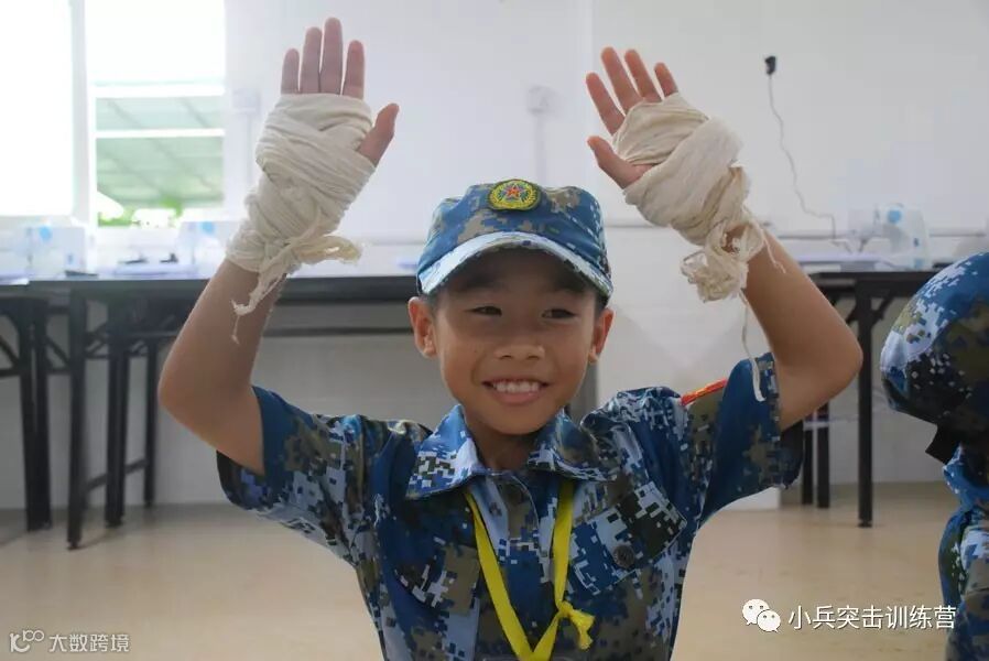 “海陆空”三军小战士夏令营活动第三天了,小兵们已经全身心的投入到夏令营的生活当中了。上午,小兵们学习战地救护,学会如何包扎伤口,下午,小兵们学做担架,之后进行救护模拟,运输伤员。让小兵们在体验与实践的活动下注入珍爱生命的意识,学会如何包扎能够让小兵们遇到突发状况时能够沉着稳重的应对!