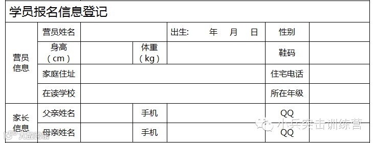 1、网络报名:关注“小兵突击训练营”公众号(微信搜索 小兵突击 或 扫描二维码),回复“ 报名冬令营+学员名字+家长电话 ”,我们24小时与您联系。