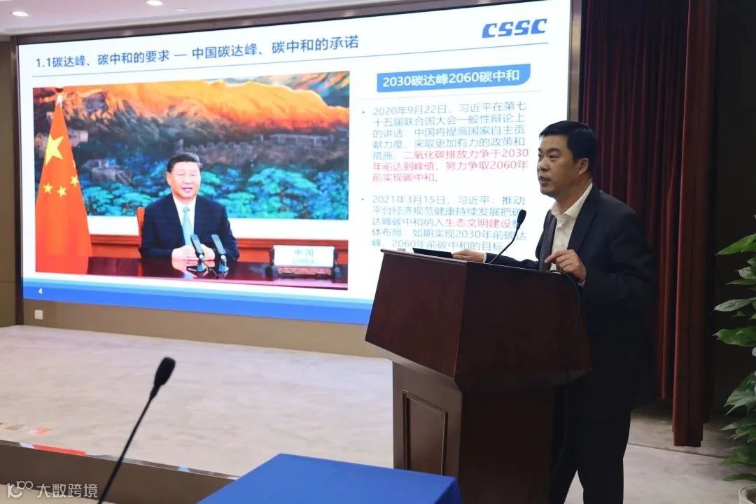 图为上海船舶研究设计院总工程师王刚毅作《船舶行业绿色转型的路径与挑战》学术报告