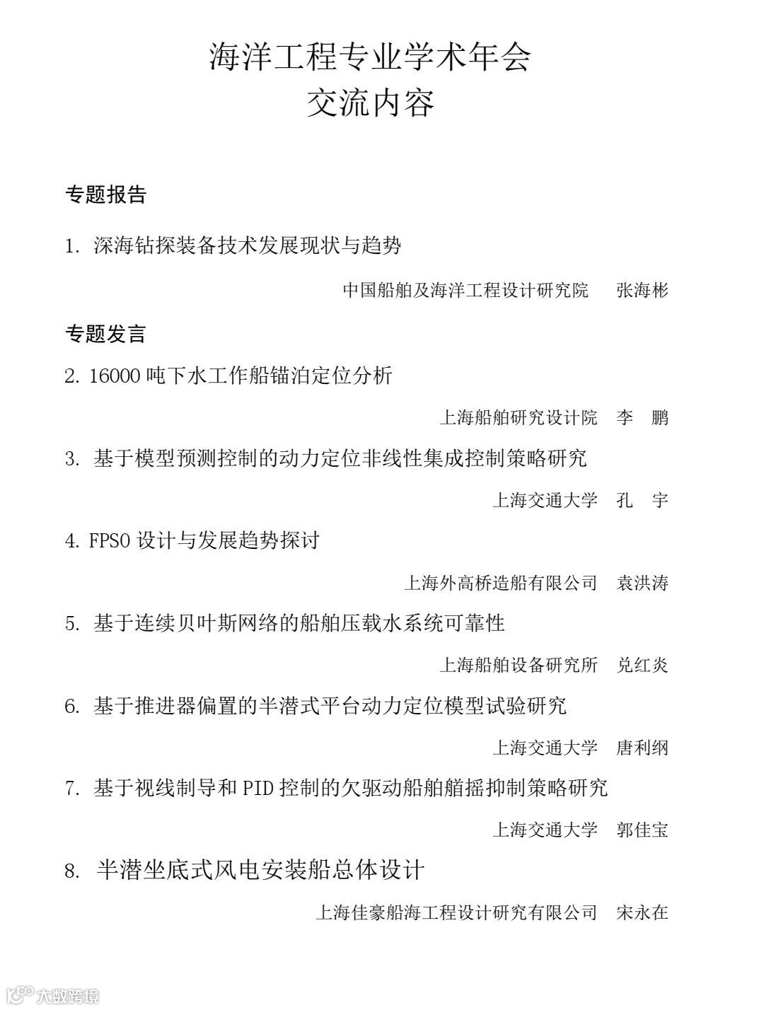 2022年11月12日(星期六)上午9:30至12:30,在线上召开上海市船舶与海洋工程学会2022年学术年会海洋工程专场。主题为“创新驱动海洋工程高质量发展”。会议将邀请专业委员会全体委员、学会会员和业界人士参加。会议重要,届时请您准时出席。