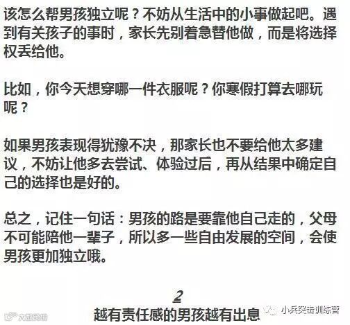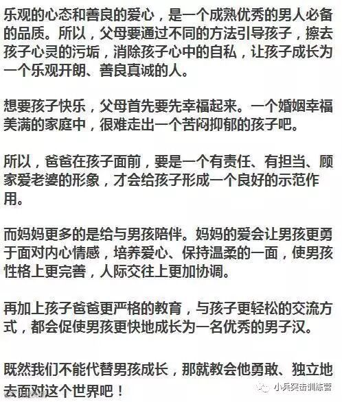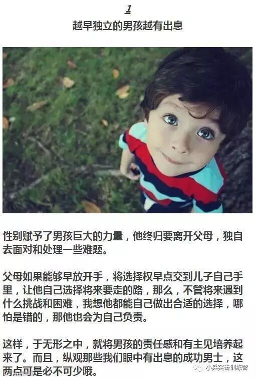 每位父母都望子成龙,望女成凤。尤其是对待儿子,要求会更严苛一些,付出的精力也会更多一些。那到底该怎么养男孩能够有出息,成了很多家有男孩的家长们一直在研究的课题。