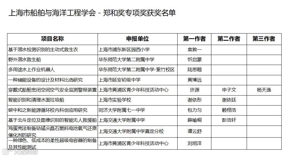 科技是国之利器,青少年是科学的希望,学会从2012年设立“郑和奖”专项奖,希望此奖项能够鼓励青少年参与科技类赛事,掌握海洋工程科学研究方法、坚持勇攀高峰的科学精神,勤于创新与思考。学会一直特别关注参赛作品中与海洋、船舶等主题相关的作品,鼓励获奖的青少年能够保持对船舶海洋的兴趣。