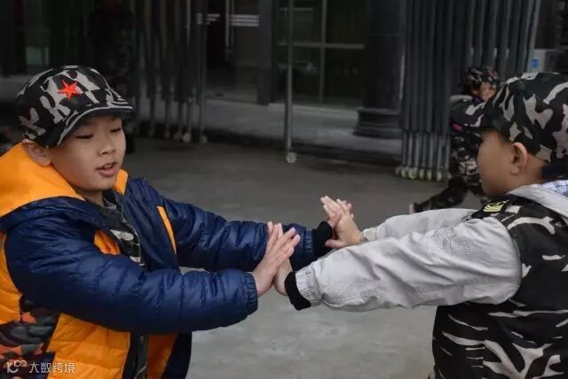 小小少年,学习擒敌拳,虽然打的不熟练,但是却也练得不亦乐乎。