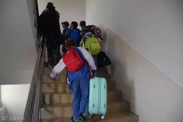 迎风飘扬到国旗,见证着的又是一个黄昏,小兵们沐浴在余晖的彩霞中,夕阳拖长了身影,一个踩着另一个又似在追赶着。肩上背的,手下拖着大包小包的行李目标是前方大楼的第七楼,小兵们要靠自己啊!
