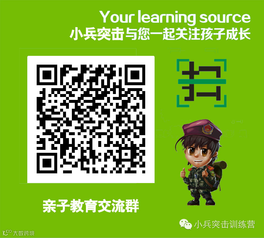 扫描二维码,参与“小兵突击亲子交流群”讨论,一起关注孩子成长教育。