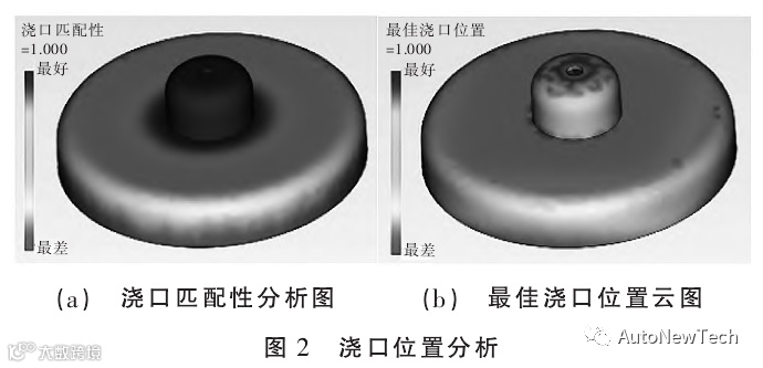塑料熔体通过主浇口进入模具型腔,浇口位置的选择是否恰当,在很大程度上影响着熔体填充的流动特性,也直接关系塑件能否被完好高质量地注塑成型,因此模具设计过程中的首要环节就是浇口的定位。利用 Moldflow 软件的浇口匹配性及最佳浇口位置分析模块,综合分析可得到塑件的最佳浇口位置。