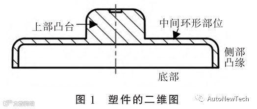 塑件的二维剖面图如图 1 所示。塑件主体尺寸为?70.5×20 mm,中间部位凸台较厚,约为 12 mm,其余部位厚度基本一致,约为 2 mm。塑件材料选用制造商Generic Default、牌号 Generic PP 的热塑性材料,其熔体密度为 0.74 g/cm3,固体密度为 0.89 g/cm3,收缩率为 2%[4]。该材料被推荐的注塑成型各工艺温度参数见表 1。