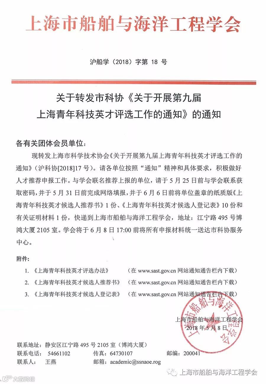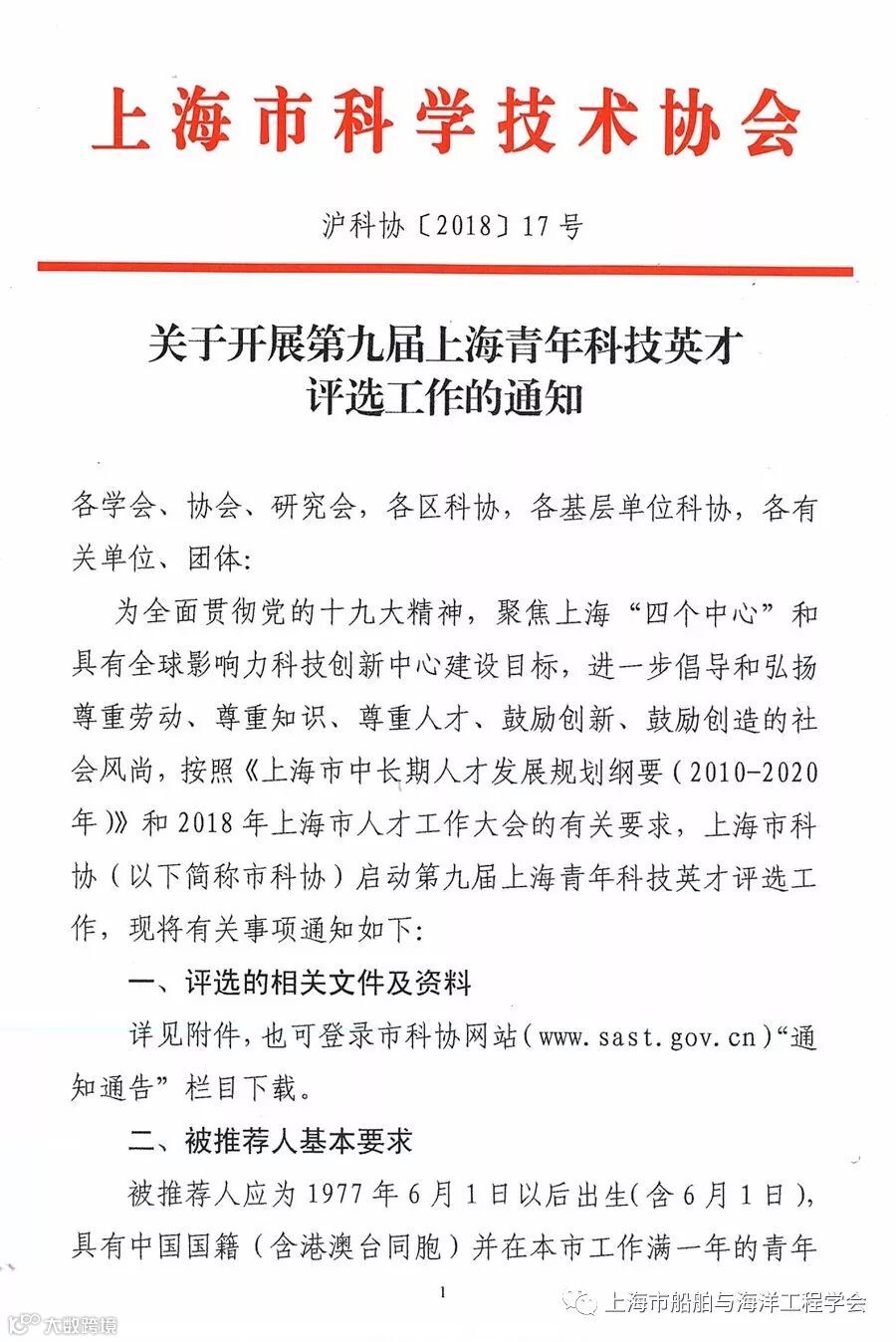 通知 | 转发市科协开展第九届上海青年科技英才评选工作通知