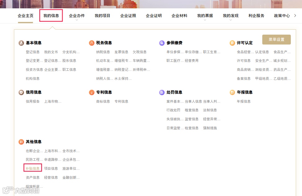 3.点击“我的信息”,在“其他信息”中点击“补贴信息”。