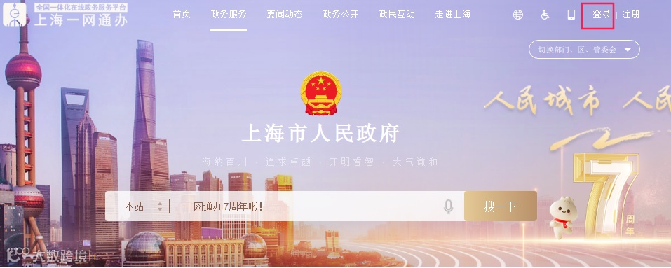 1.登录上海一网通办https://zwdt.sh.gov.cn/