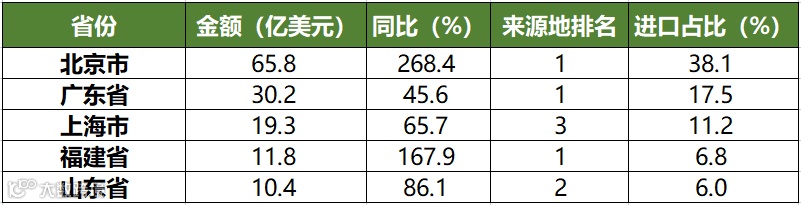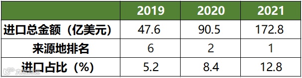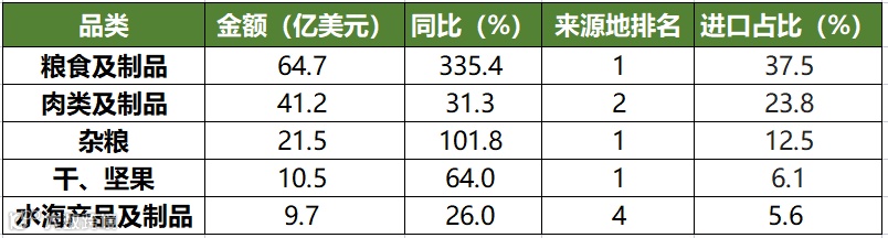 备注:来源地排名是指相关品类自美国的进口食品金额在所有进口来源地中的排名。