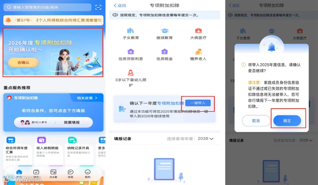 2026年的专项附加扣除信息若无变动,只需在2025年基础上确认即可。