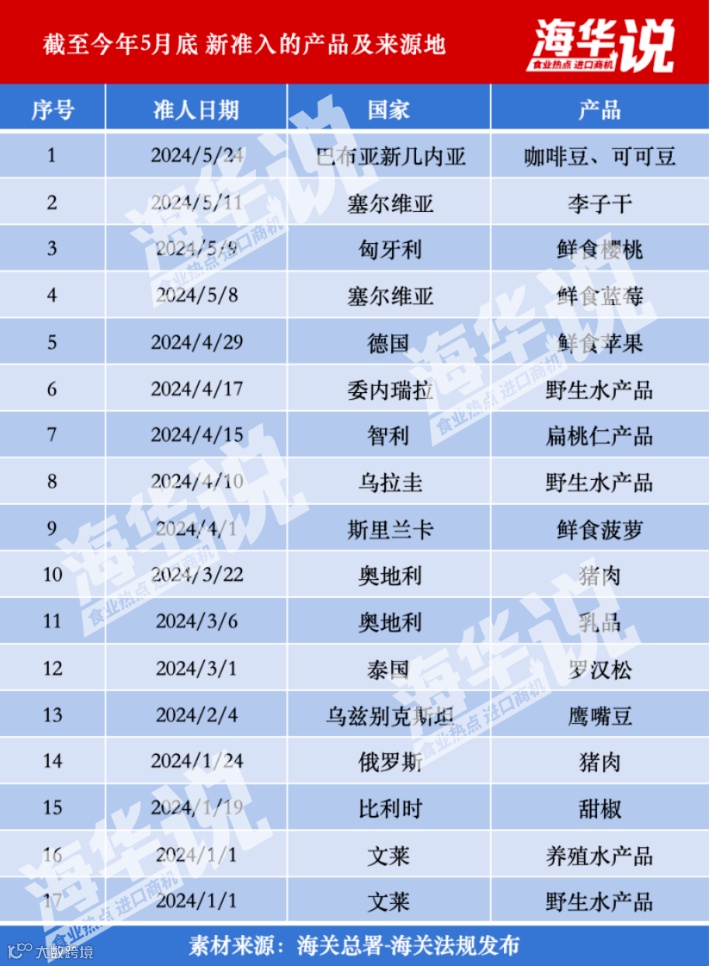 这给了我们一个启示:新开放的进口来源地往往蕴藏着巨大的商机!海华说独家整理了《2024年新准入产品及来源地》清单,扫描下方二维码即可免费获取!