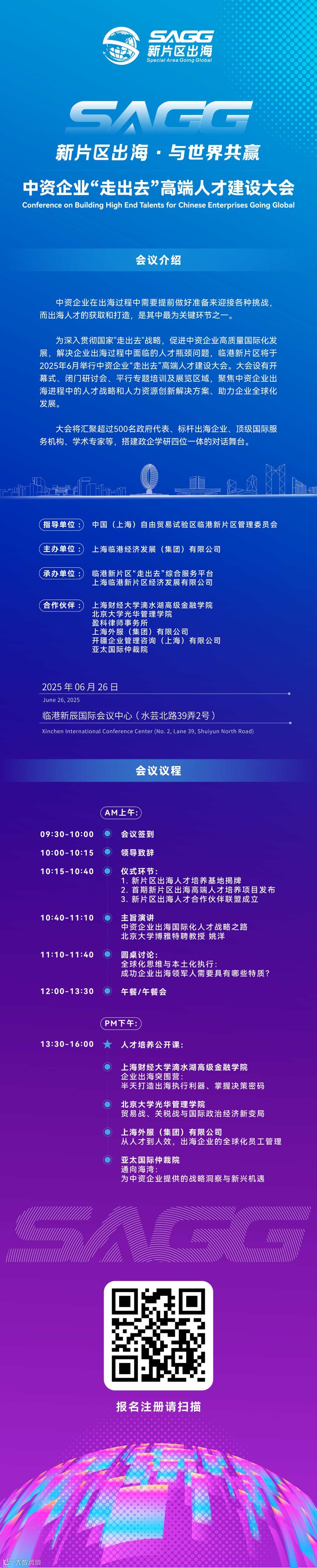 2025年6月26日,上海·临港 一场破解出海人才困局的战略盛会——中资企业“走出去”高端人才建设大会即将重磅启幕!此次大会以“新片区出海·与世界共赢”为核心理念,政策红利与全球智慧共振,资源整合与实战方案齐发,助力中资企业突破人才瓶颈,抢占全球化发展先机!