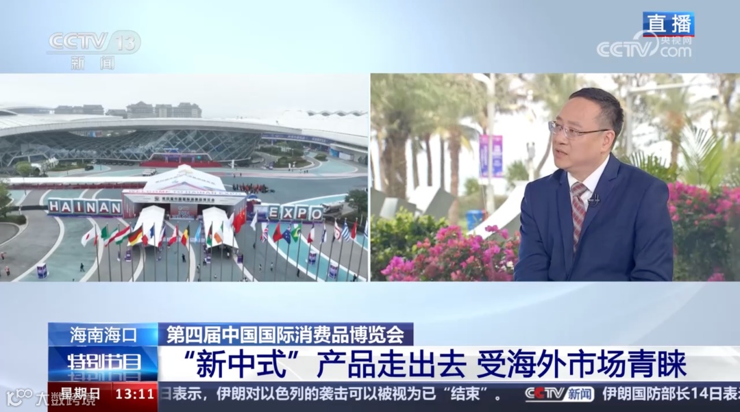 4月14日下午,中国食品土畜进出口商会进口食品公共服务平台主任马海华受中国中央电视台邀请,作客CCTV13央视新闻频道直播节目。在节目中,马海华与主持人共同探讨了中国消费品如何通过中国国际消费品博览会这一国家级平台走向世界舞台,发挥国货在国际市场上的竞争力与文化魅力。