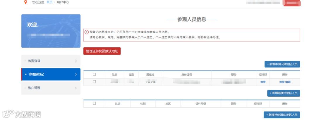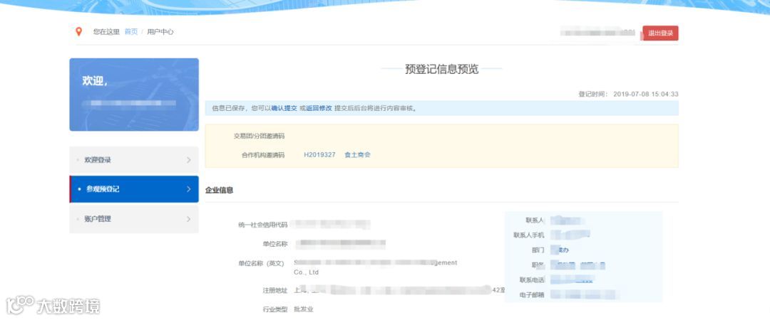 您可以进行完善或修改。然后,点击“参观预登记”填写相关信息。