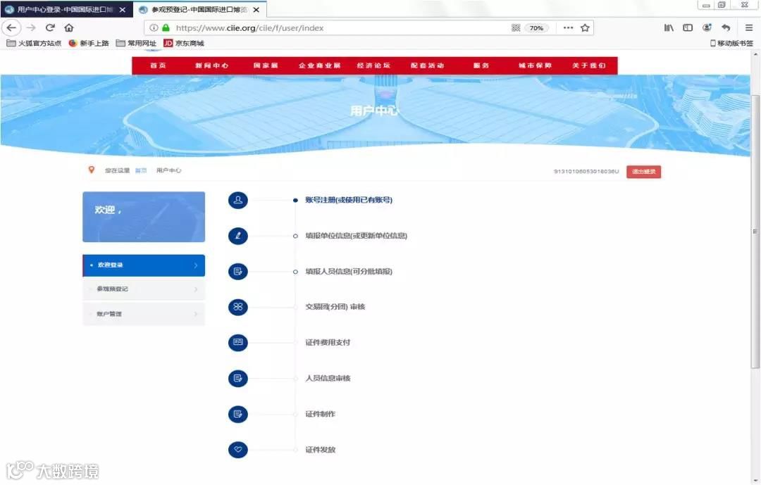 完成登录后,首届进博会注册填报的相关信息会自动带入您的账户所在页面。