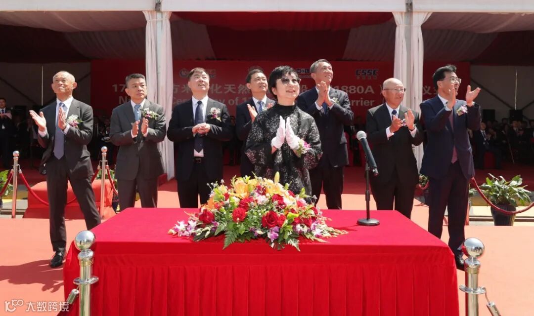 命名嘉宾丁巍女士为新船命名,工业和信息化部装备工业二司司长徐春荣,中国海油石油集团副总经理汪剑波,中国远洋海运集团有限公司副总经理冯波,中国船舶集团党组成员、副总经理王征致辞,公司党委副书记、总经理翁红兵主持命名仪式, 中国海油石油集团、中国远洋海运集团、日本商船三井株式会社、美国船级社、中国船级社、GTT、新船船长、驻厂监造组、公司领导及老领导陈军与各方嘉宾近200人出席。