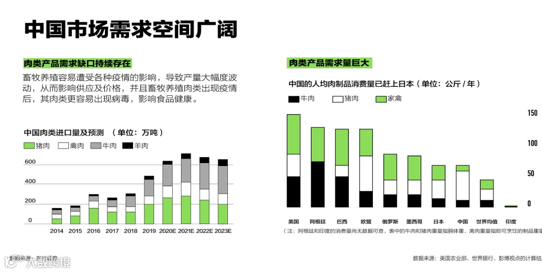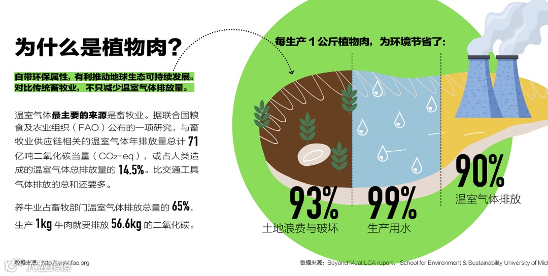 植物肉与传统人造肉有着本质区别,采用的是提纯分离的方式,经一系列加工步骤,使产品具备动物肉制品的质地和口感。而“环保”、“健康”、“面向未来”均是其引人入胜的标签。